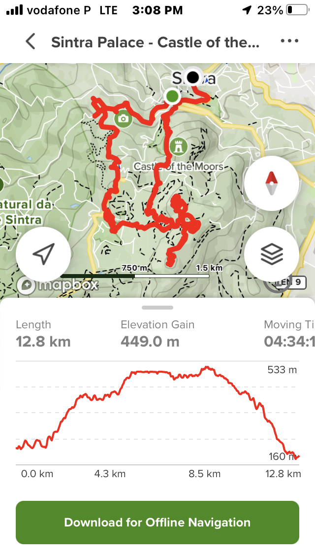 I stood in line for almost an hour to wander the Palace like every other tourist. But wished I’d spent that time ā instead ā hiking the lovely trails over 200 hectares of surround Pena Park. It’s a labyrinth and I was lost most of the time despite trying to follow a route on AllTrails.