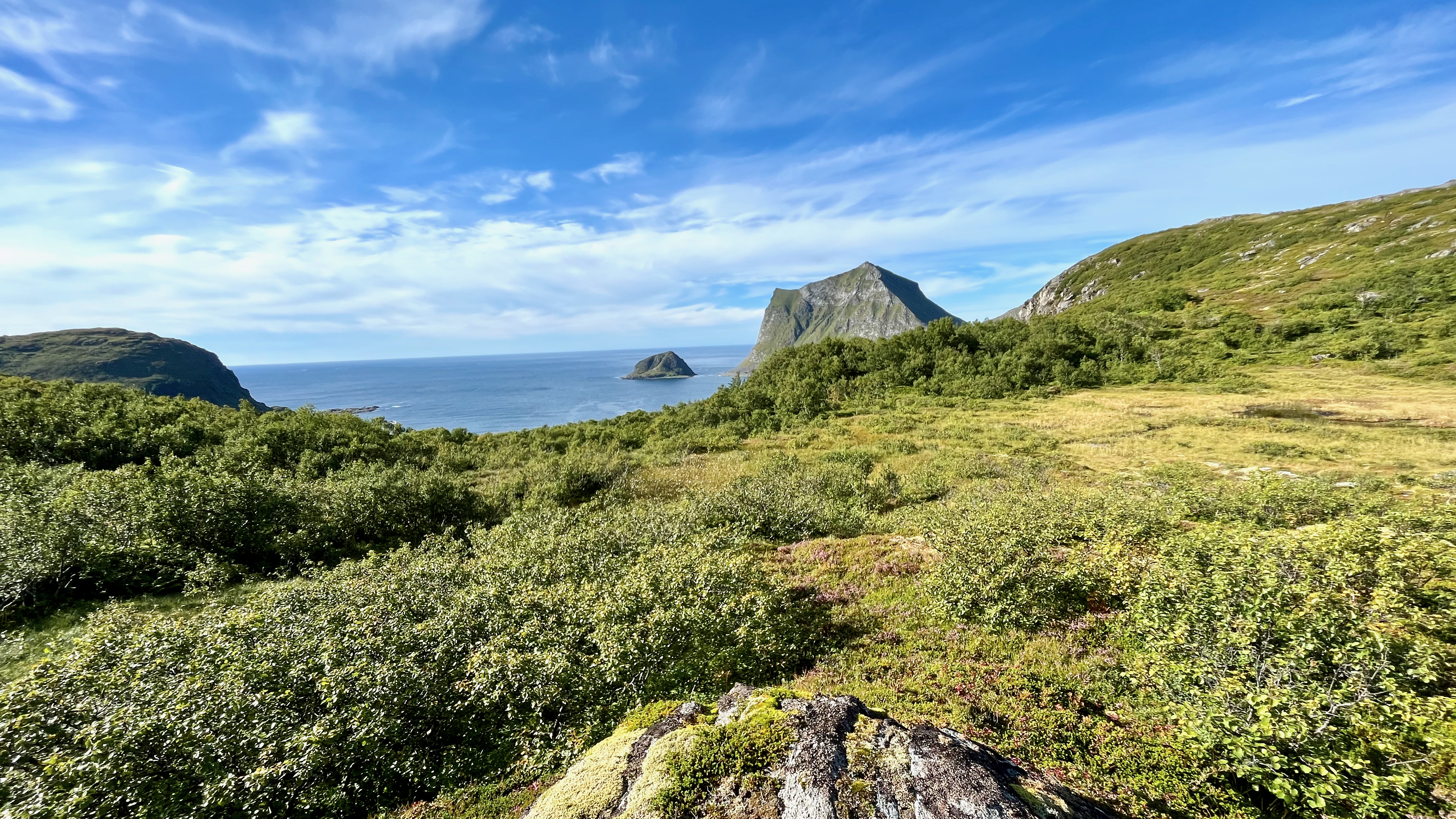 The unmarked, but well worn trail is easy to follow and relatively bog-free by Lofoten standards. That means it takes 20 minutes before your shoes are soaked rather than the usual 10 minutes. 😀