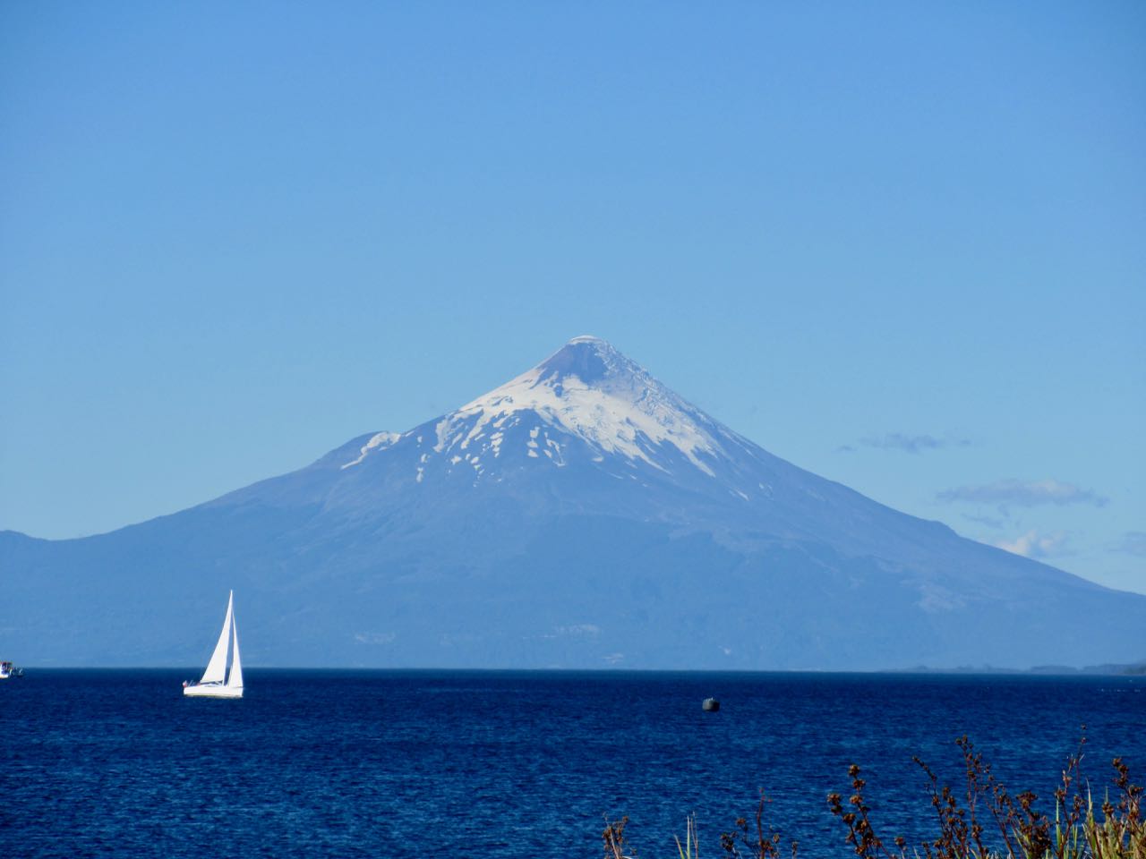 One adventure town there is Pucón, 780 km to the south of Santiago. On the shore of Lake Villarrica. The Villarrica volcano located roughly 17 km to the south.