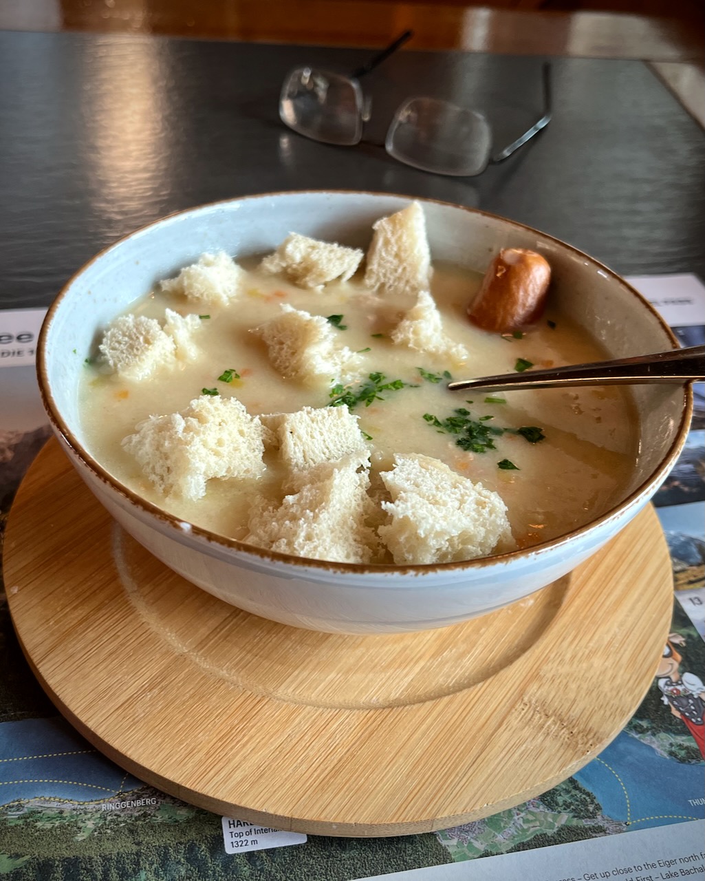 I ended up buying an expensive train ticket back down to Grindewald. And enjoying Swiss soup at Kleine Scheidegg while I waited out of the rain.