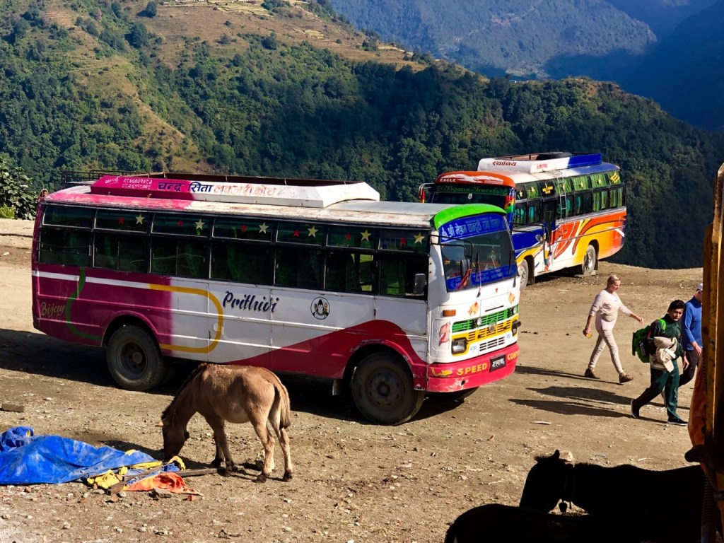 - for sure the worst thing about Himalayan treks is getting to and from the trailheads. Local buses, shared jeeps and private vehicles are all slow. The roads terrible and often dangerous. Best of bad options, for us, is paying for an expensive regular taxi at the start. Taking the inexpensive local bus on the return.