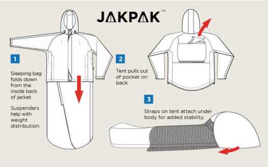 JakPak™, the world’s first all-in-one waterproof jacket, sleeping bag and tent, …