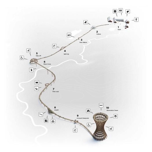 The centerpiece of the construction is set to be a winding observation tower, topping out at about 150 feet (45 metres). The hourglass-like construction should rise in a luscious preserved forest an hour south of Copenhagen, in Glisselfeld Kloster, Haslev. It consists of a 2000 ft. (600m) internal ramp, which will take visitors from the forest floor, through the treetops culminating with a 360° view of the hilly landscape, characteristic for the region. …