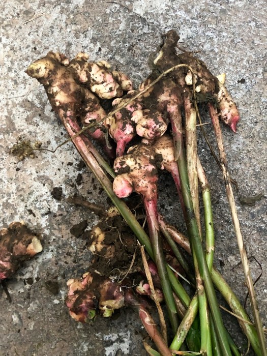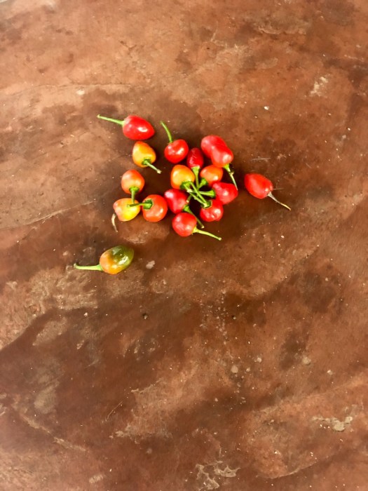 She picked fresh ginger and chilies. Their small, hard oranges were excellent too.