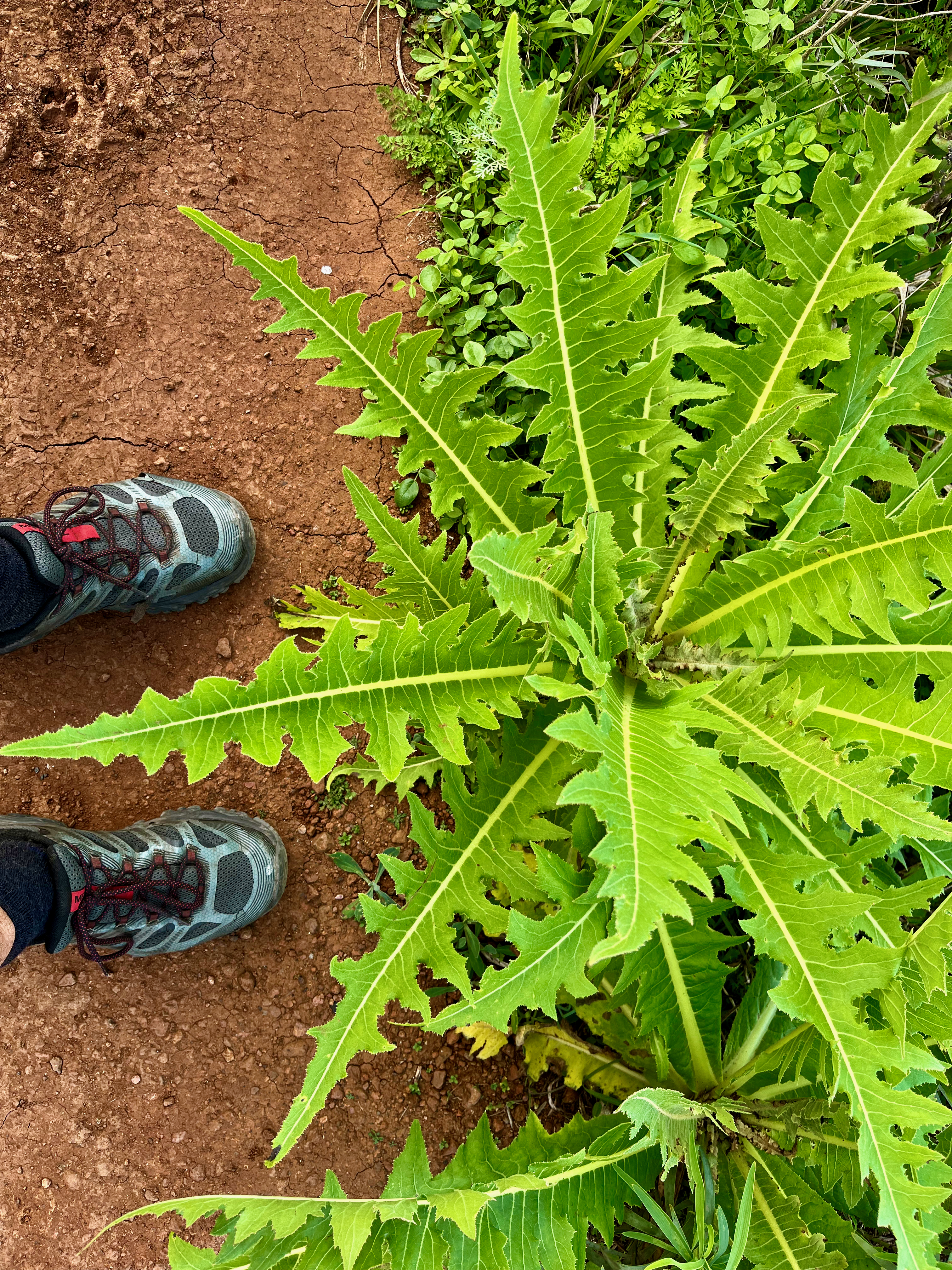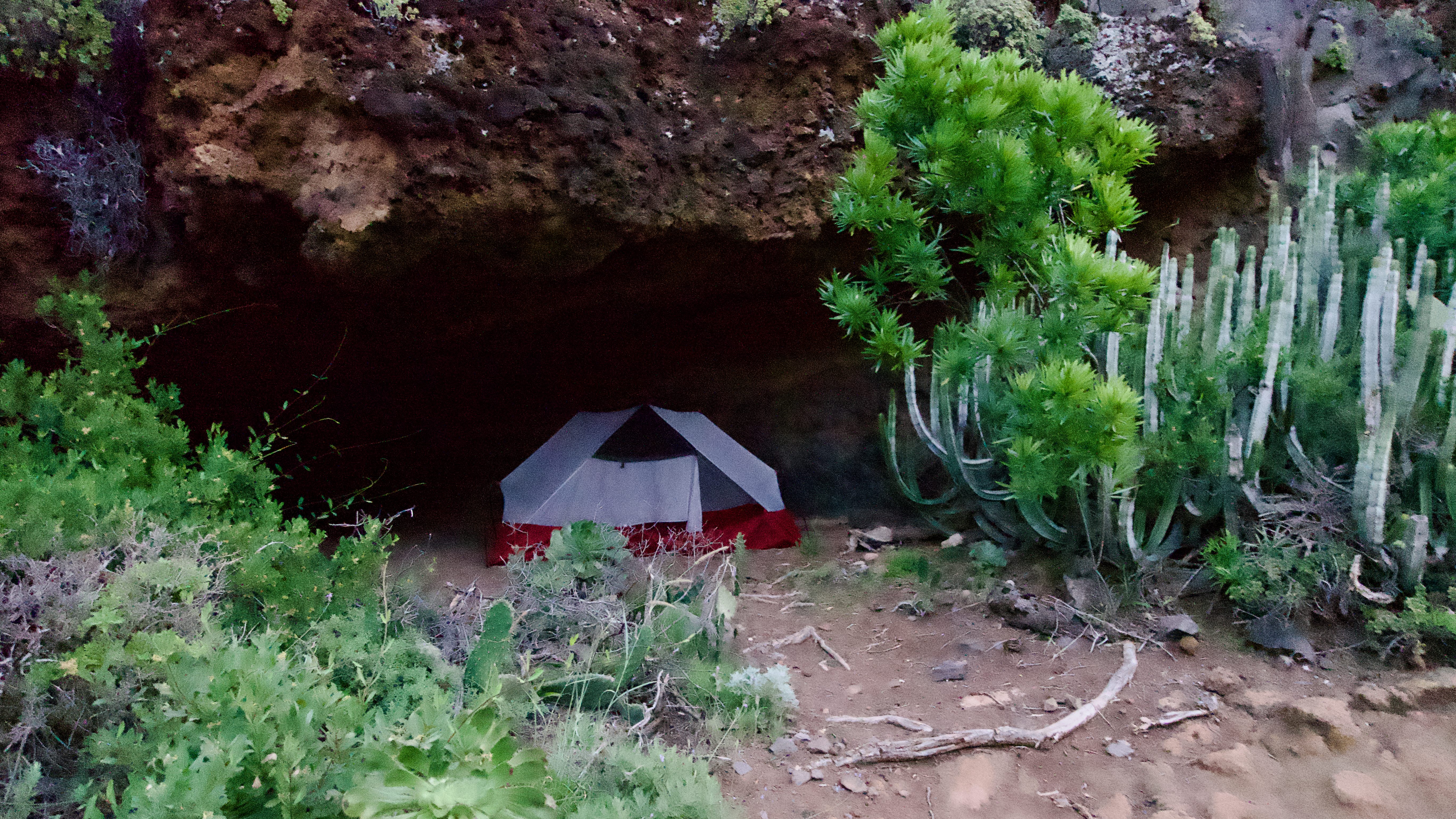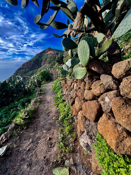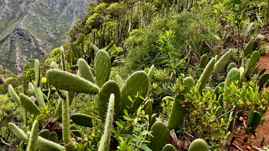 Dropping in elevation, the vegetation changes. Near Cruz del Carmen it’s relatively lush laurel forest. After Chinamada it’s arid brushwood and cactus.