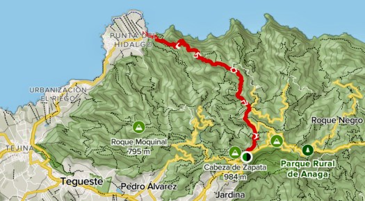 The specific trail is numbered PR-TF 10 Cruz del Carmen to La Punta del Hidalgo.