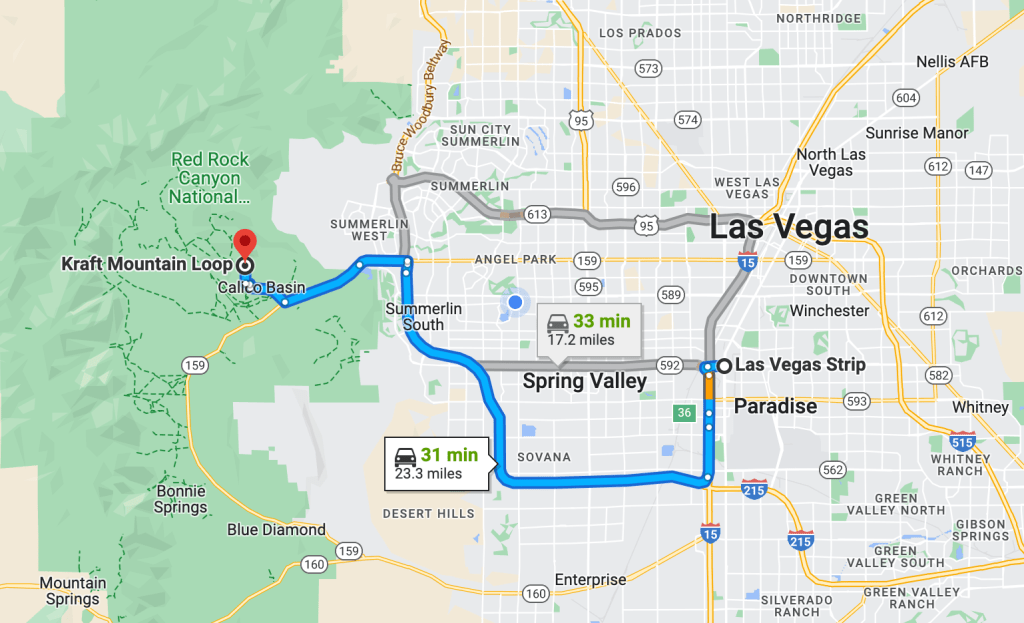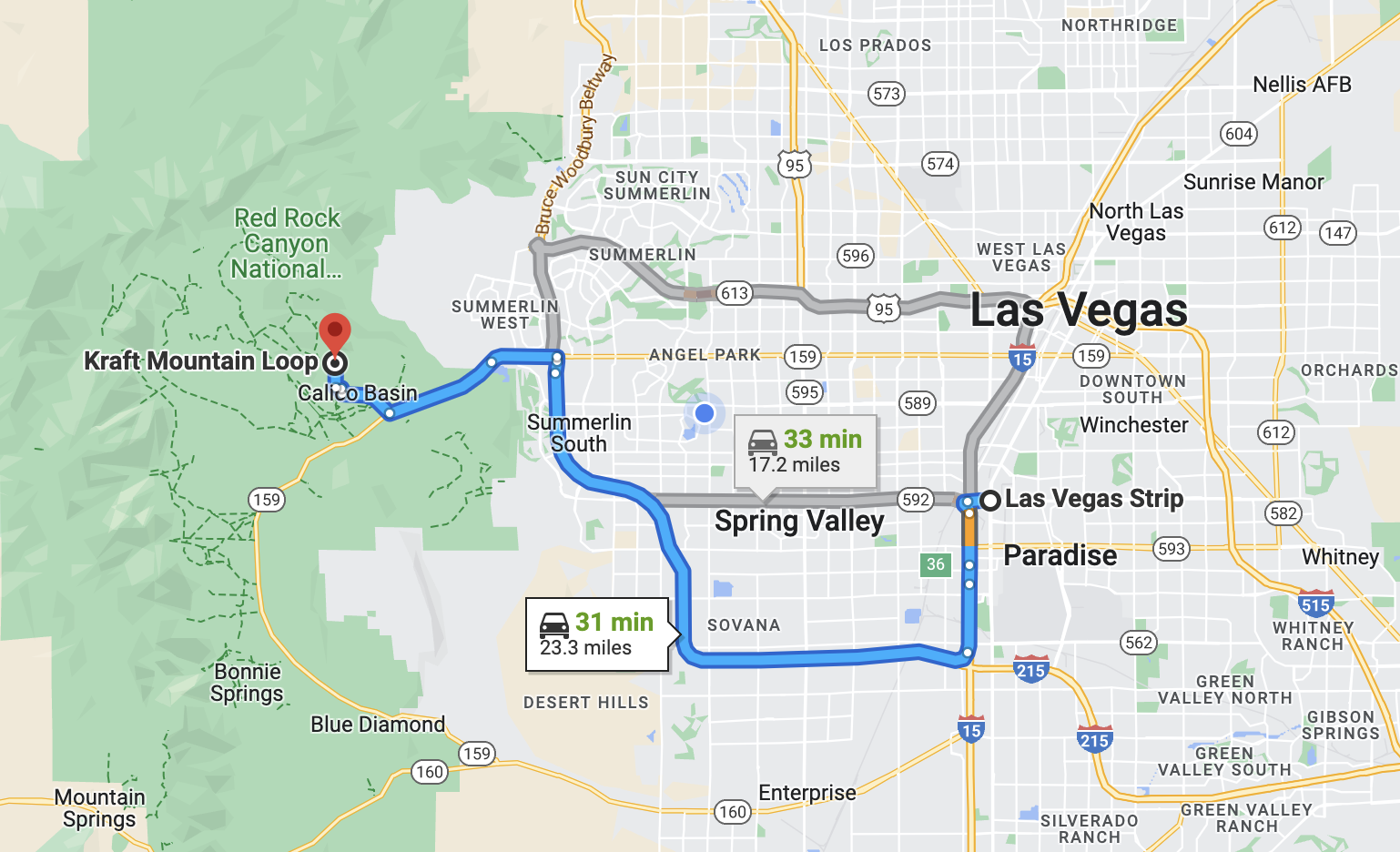 No need to pay entry to Red Rock Canyon, this adventure is right next door ➙ out of Calico Basin. Free entry. Free parking.