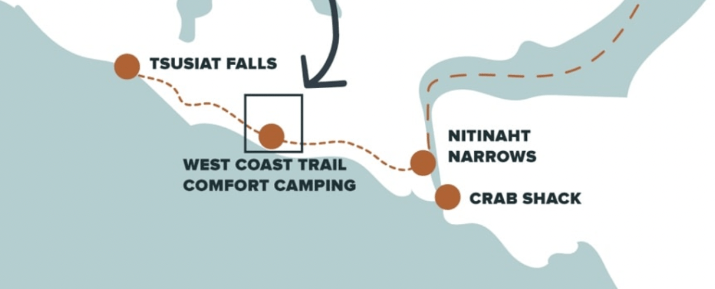 In the rain, it’s tempting to stop and see if there is availability at the Ditidaht First Nation Comfort Camp.