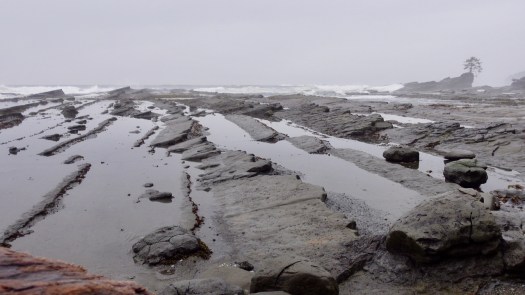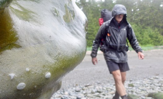 The shelf in the rain is classic West Coast Trail. But you are forced inland at the impassable headlands of Tsuquadra Point.
