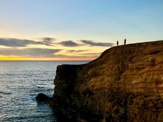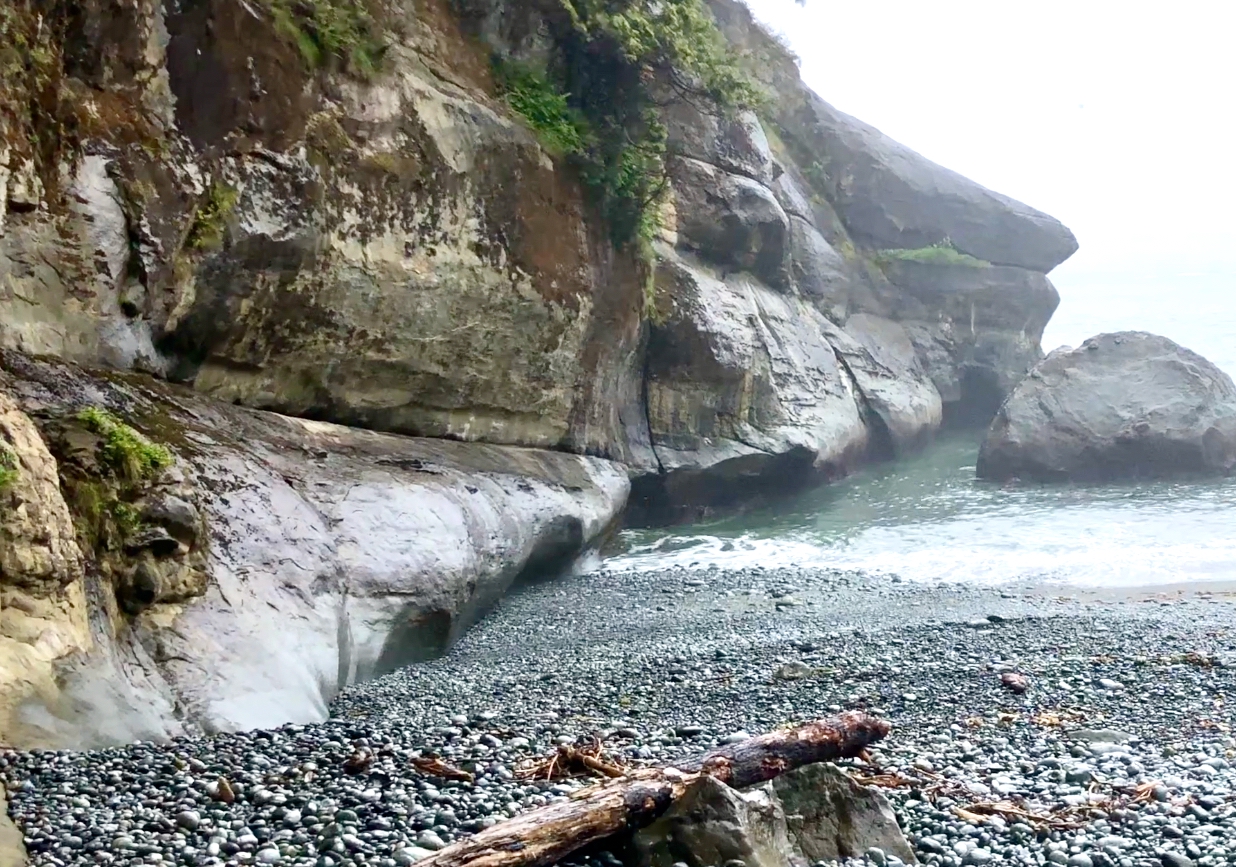 At one point — for fun — we tried and failed to cross an impassable headland. Waves were too high to wade. I turned back to the last beach access, but some younger hikers managed to scramble up the cliff to rejoin the inland trail.