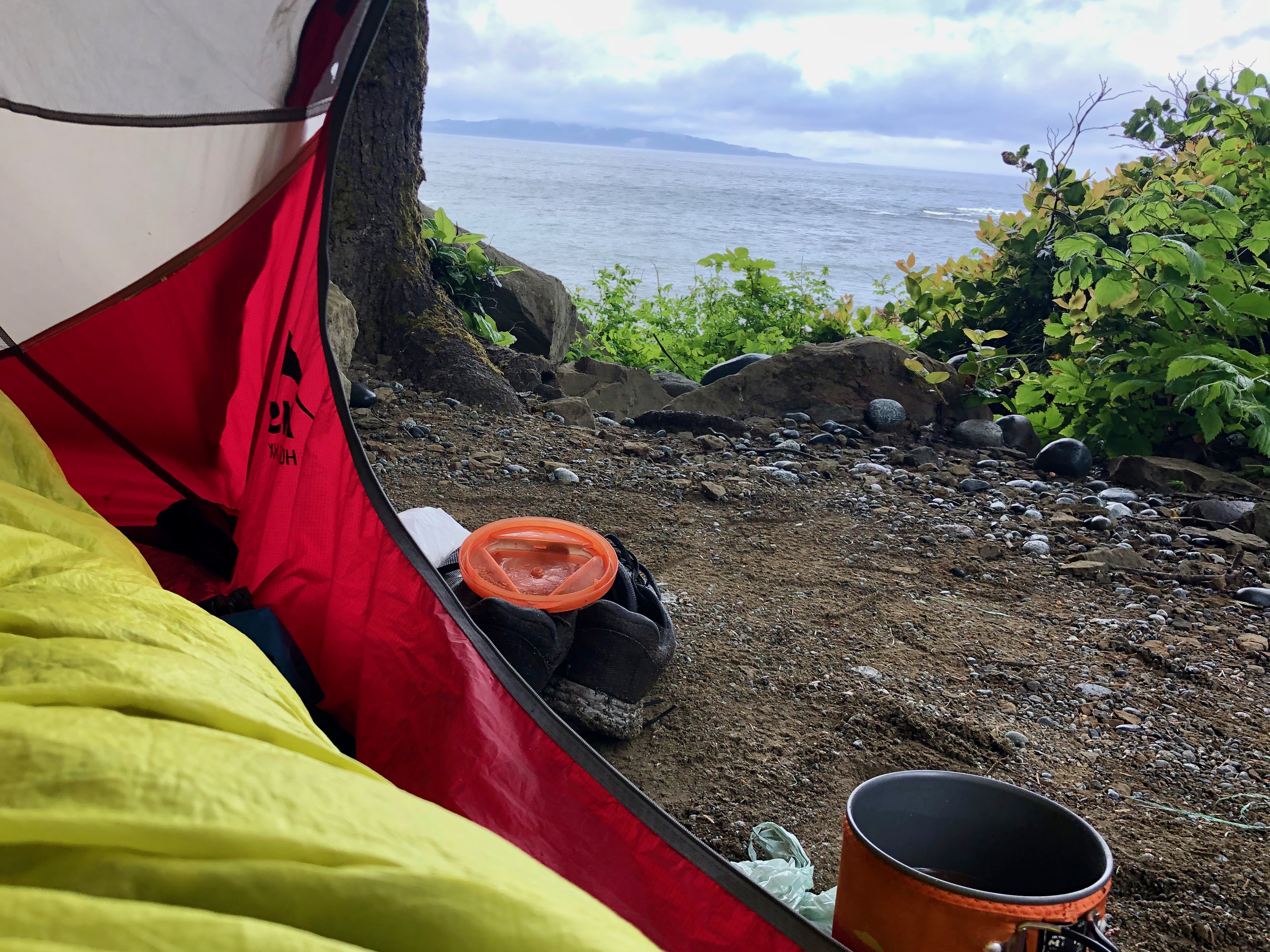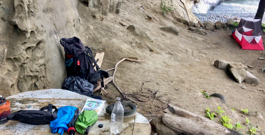 But I was dry in a little tent secured under a Tsusiat cliff overhang. Didn’t need my fly.