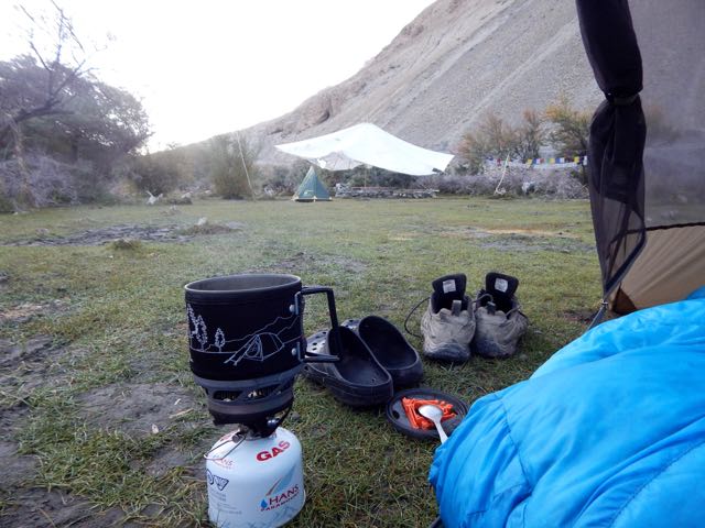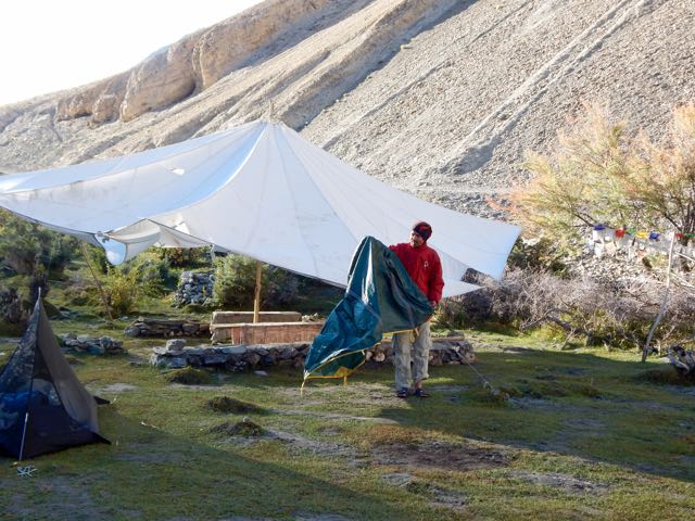 We were surprised when a Tibetan woman appeared asking for 150 rupees each. It had seemed the campsite (dirty and without a toilet) was closed for the season. Apparently not.