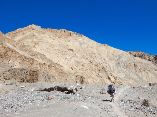 We considered stopping near Hankar 3990m. But Sergei likes to walk until dusk. So he can set up his tent in the dark (for free) and not be hassled by passing locals. Everyone who walks past asks for 150 ruppee, even a monk … though the monk actually seemed to have “receipts” in his robes for the camping fee.