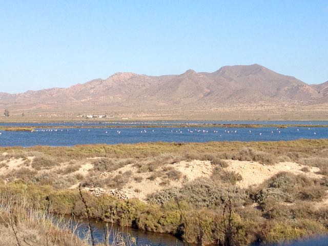 Between the village of San Miguel and the Cabo de Gata point are salt flats. This is an important stopping point for migrating flamingoes and other birds.