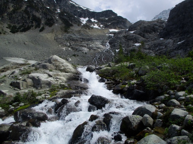 Finally I decided to pack my tent back down to my rent-a-car. Get ready for tomorrow’s hike. (I tented for free on the river from the Wedgemount turn-off, a cyclists hangout.)