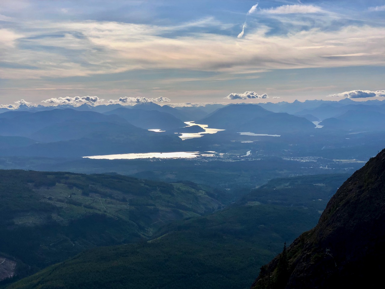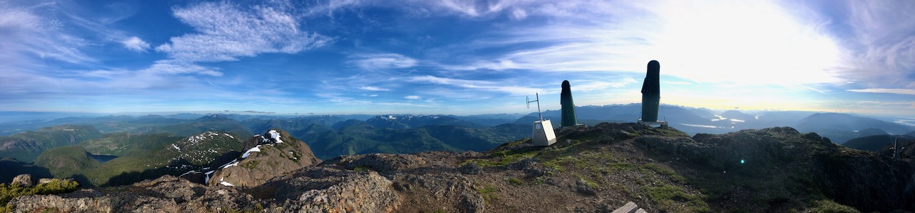 From the top you can see from Port Alberni to Mt. Baker in Washington State.