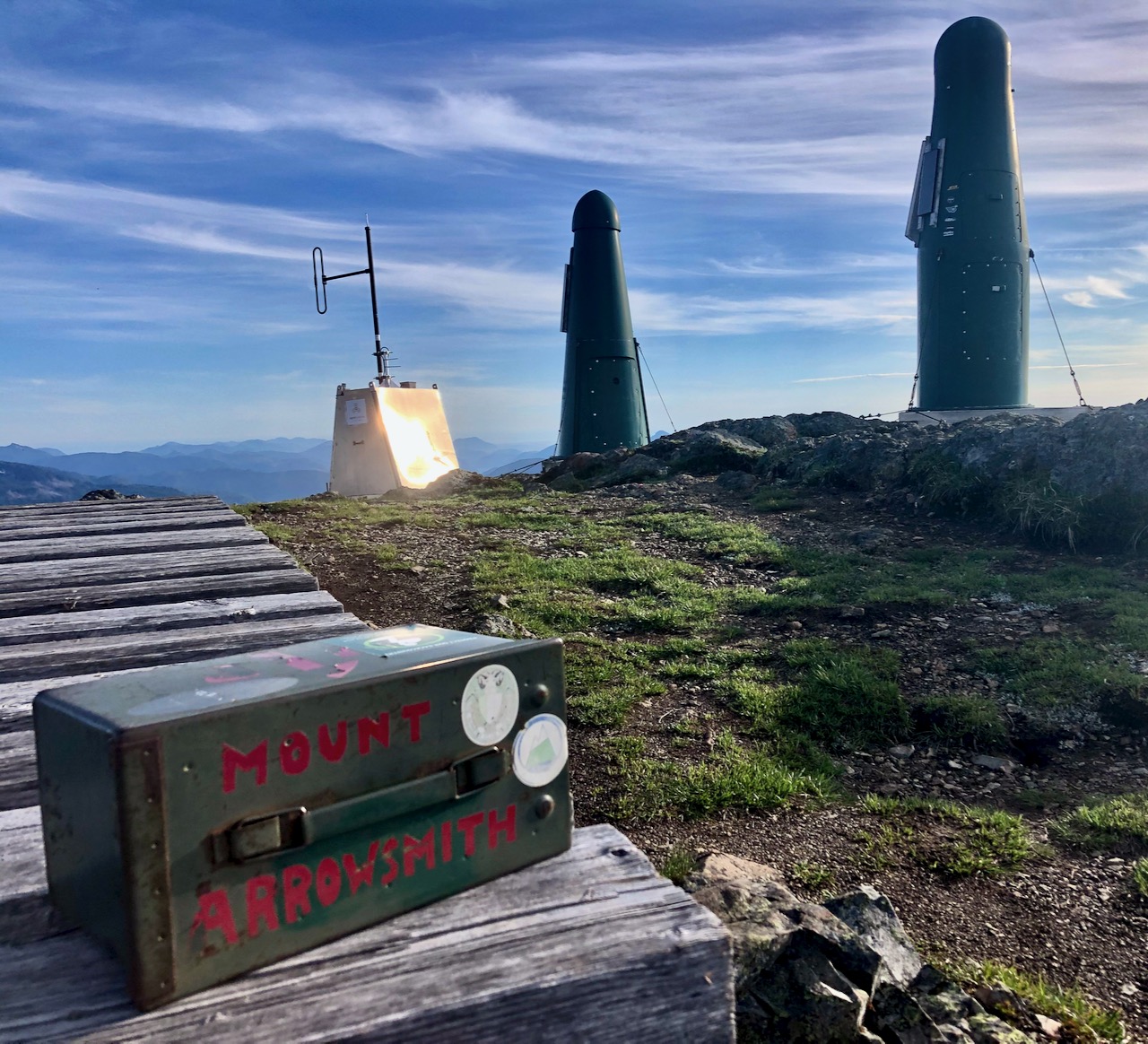 Mount Arrowsmith 1,819 m (5,968 ft) is the most prominent peak seen from my parents home in Vancouver Island.