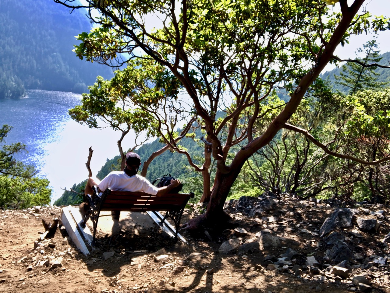 Many continue on to the first lake vista. It took me about 2 hours to get here. There are two benches, one named Forever Tuesday after the Tuesday Walkers Club in nearby Port Alberni.