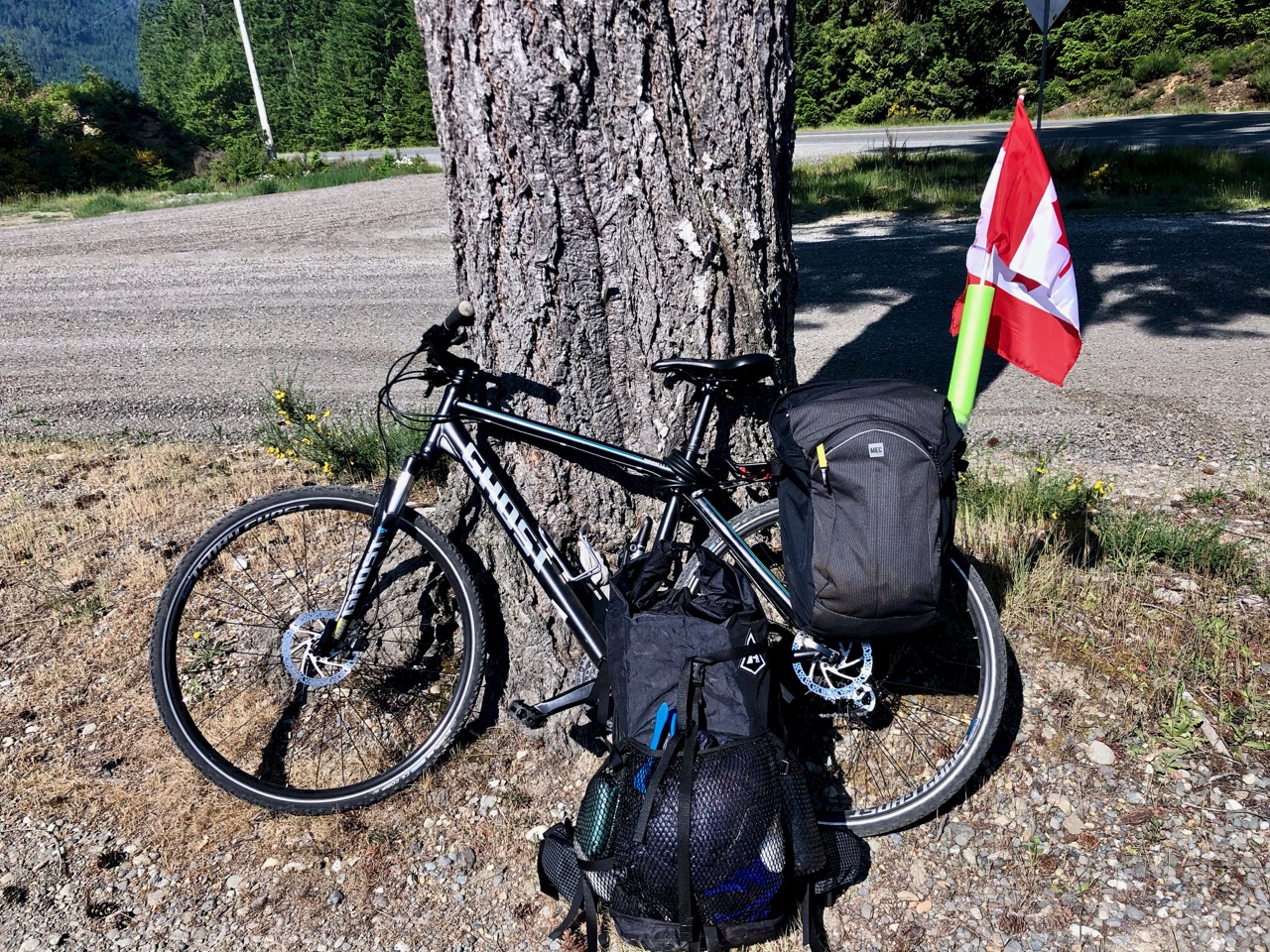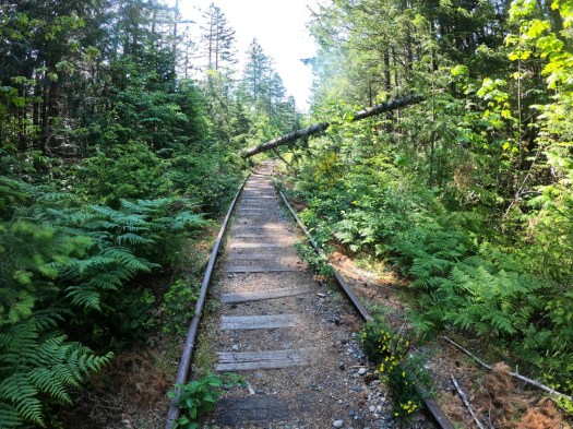 I hid and locked my bike close to the trailhead. Transferred what I needed to my hiking pack — and headed up the railway tracks.