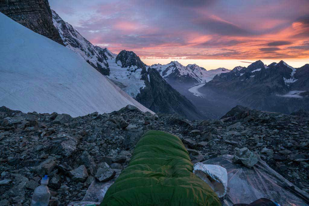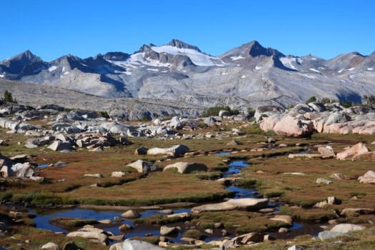 From the pass it’s a long but comparatively easy descent down to the moraine wall. There’s no real trail, but you can’t get lost.