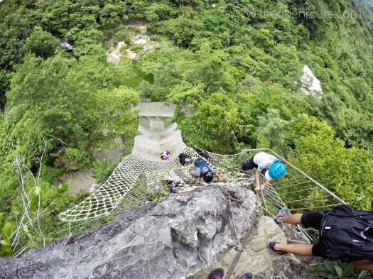It’s another early morning scramble to navigate along the far side of Laguna Negra. Some fixed ropes help on the downclimb.