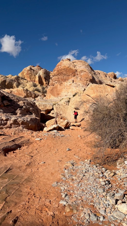 Temperatures moderate in early January. Winter is an ideal time to hike the Nevada deserts. This trail was busy with tourists.