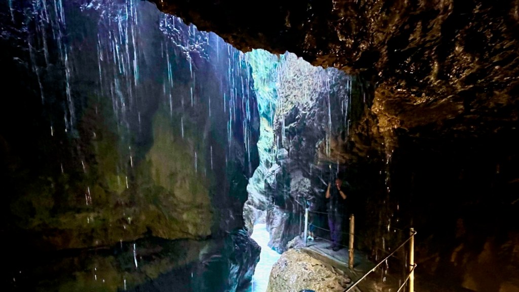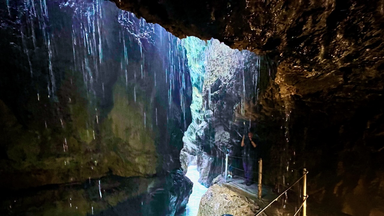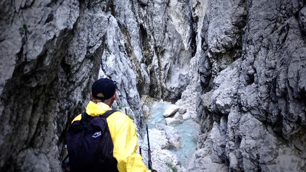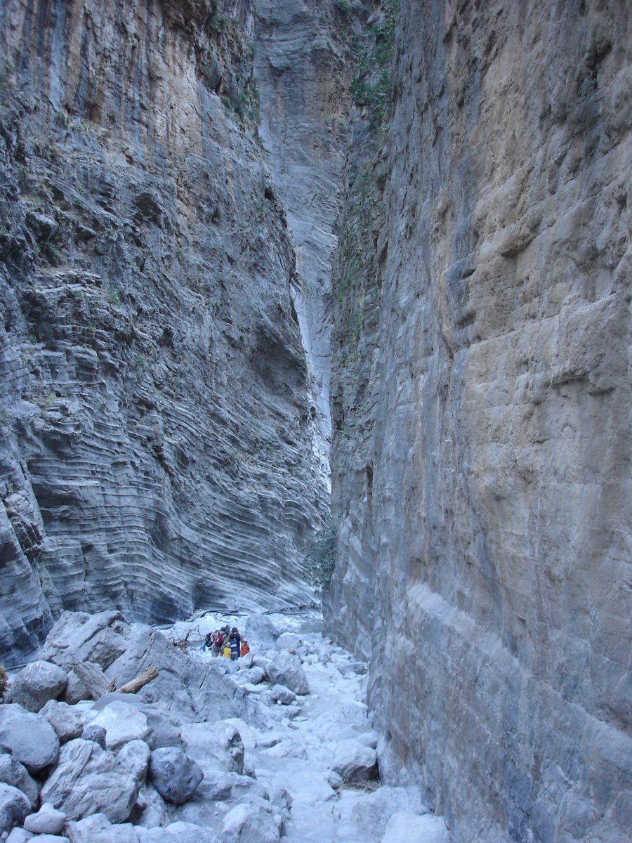 Before long, the walls stand barely more than shoulder-width apart and perhaps a hundred feet tall and the light at the bottom of this slot canyon grows dim.