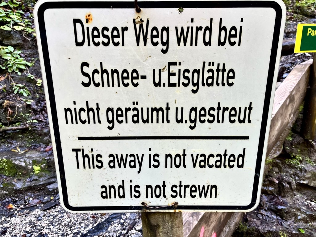 We downclimb a sturdy wooden ladder installed for getting over a pour-off that drops several feet.