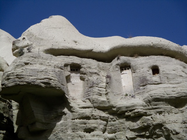 Historically farmers built roosts for pigeons in the valley wall in order to later collect their guano.