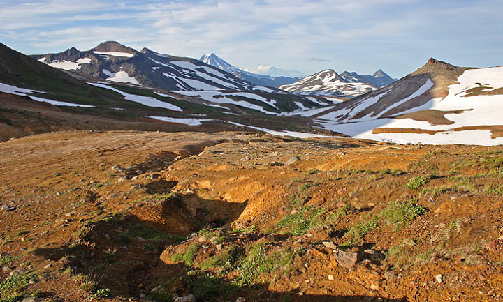 The trail begins among the ripe banana stands of Kilimanjaro’s verdant lower slopes and gradually inclines up through the dense, wet montane rainforest toward alpine meadows and moorlands before reaching the peaks.