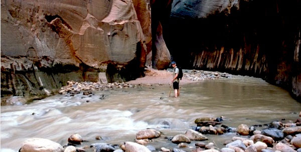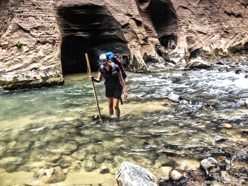 Autumn is a good time to hike the Narrows: easier reservation, fewer people hiking, changing of the trees, … but cold water