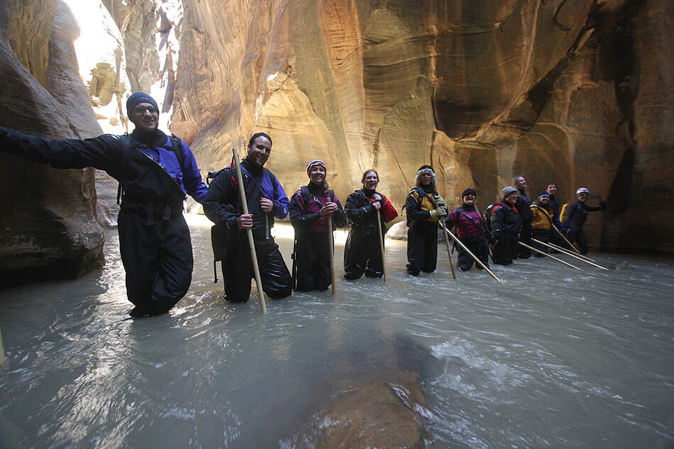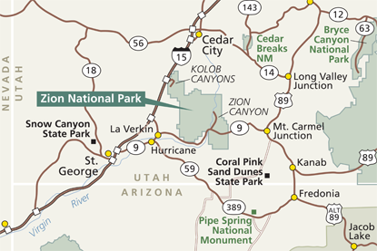 a good place to organize rental gear and transport to Chamberlain’s Ranch trailhead is in the town of Springdale, Utah, just outside one of the Park entrances