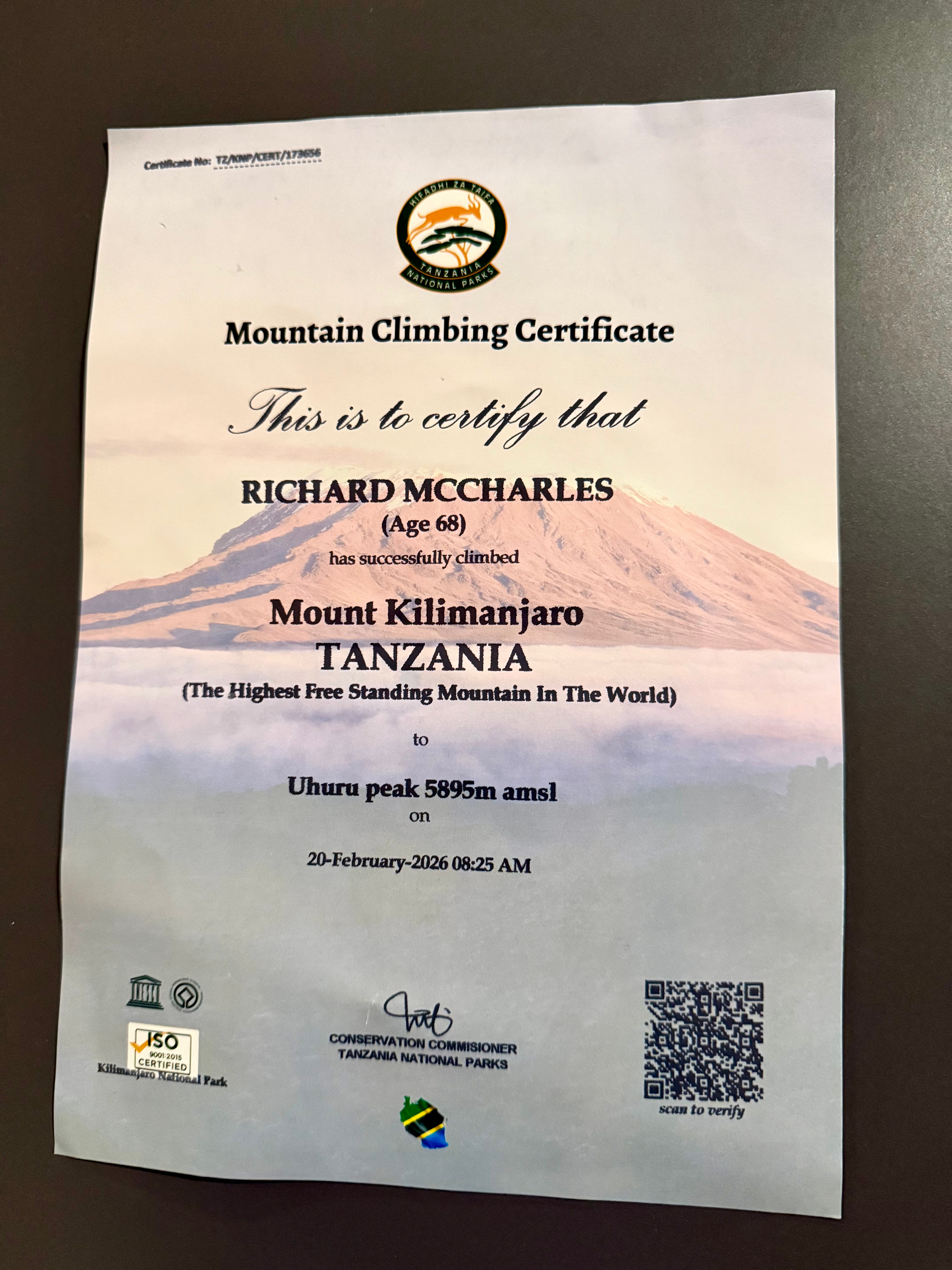 It took me 68-years to finally get to Kilimanjaro. The eldest my African guide got to the summit was 79.