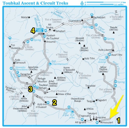 We did the full circuit in 2018 and found it a mistake to do a paved road walk Imlil to Tacheddirt on the first day. Then make a climb to a 3550m pass on the second day. That was poor acclimatization.