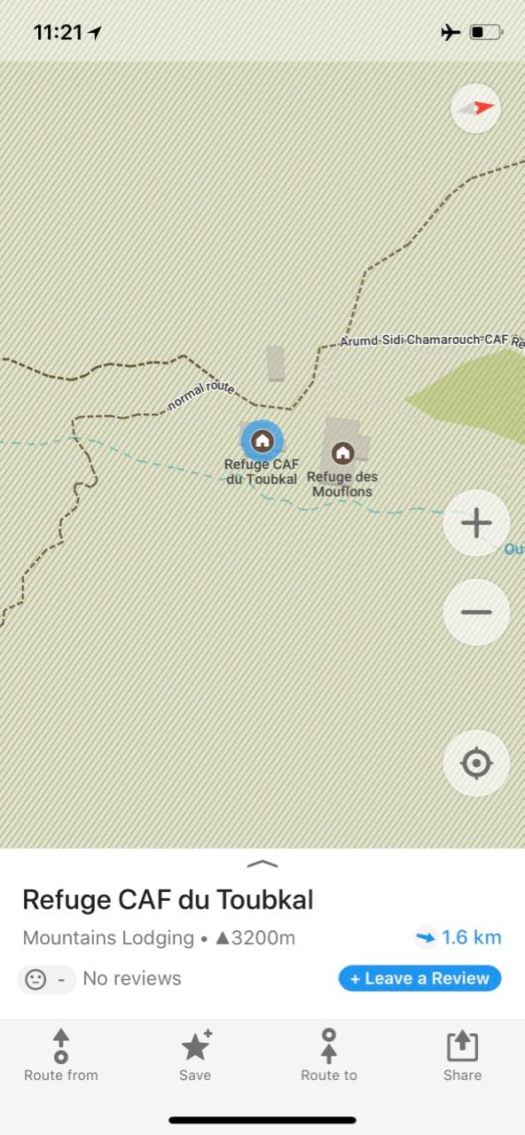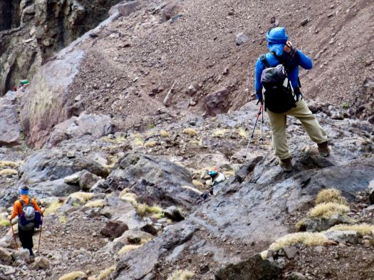 At the bottom of the pass is the start of the climb to Ouanoukrim, second highest peak. If weather cooperates, and you have the energy, it’s well worth climbing at least part way up as acclimatization for Toubkal next day. That route is on Maps.me, as well.